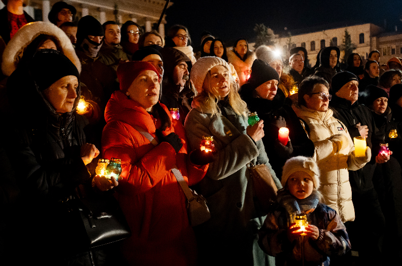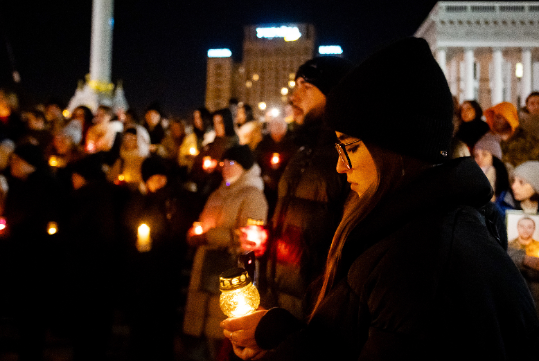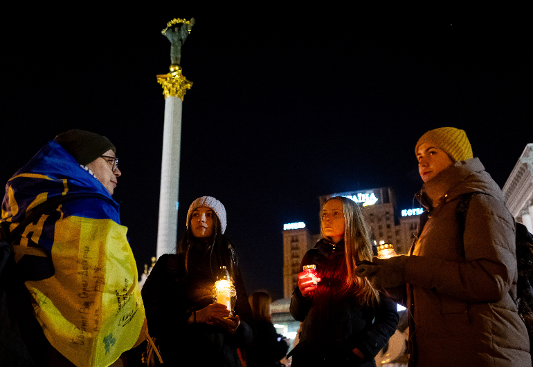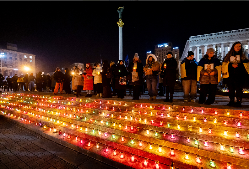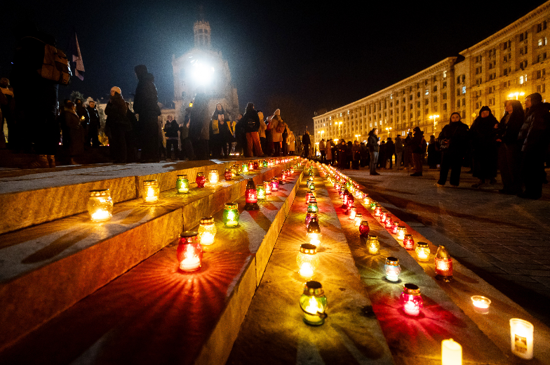 24 февраля 2025 года, в третью годовщину полномасштабного российского вторжения в Украину, на Майдане Незалежности в Киеве люди зажгли свечи, чтобы почтить память всех погибших за время войны.