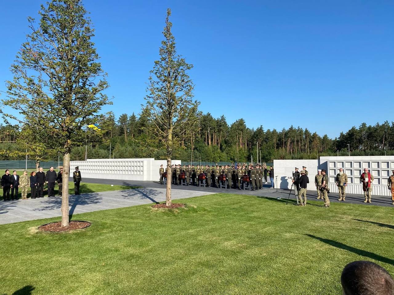 На Национальном военном мемориальном кладбище в Киеве состоялся первый военный церемониал захоронения неизвестных солдат с воинскими почестями. В церемонии принял участие президент Украины Владимир Зеленский.