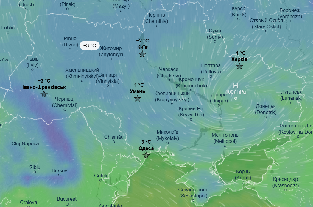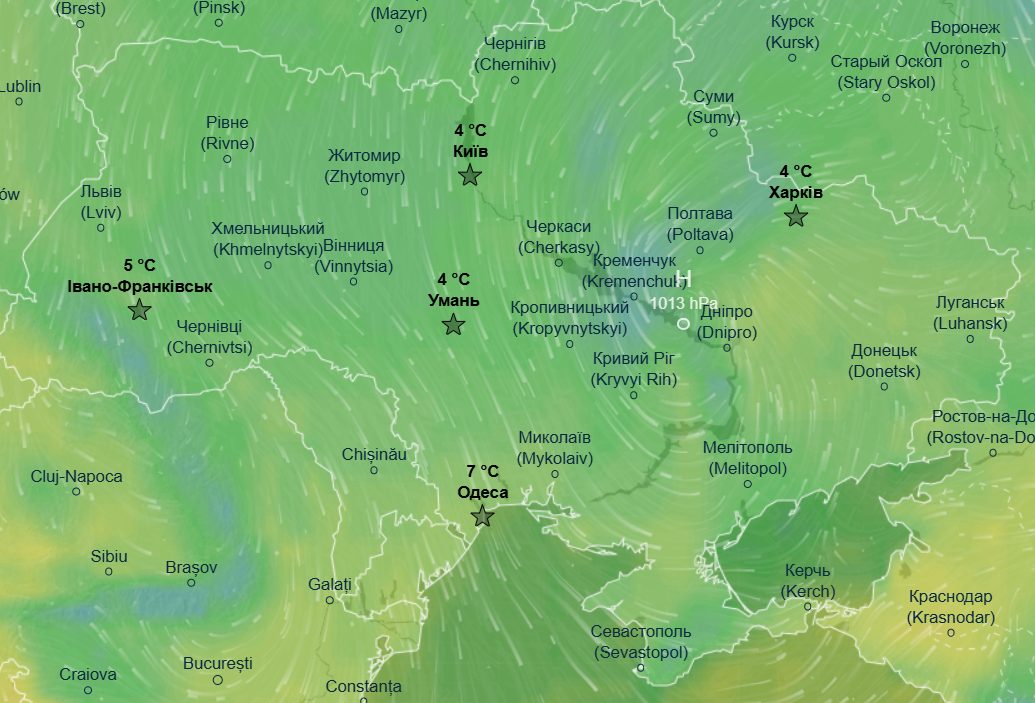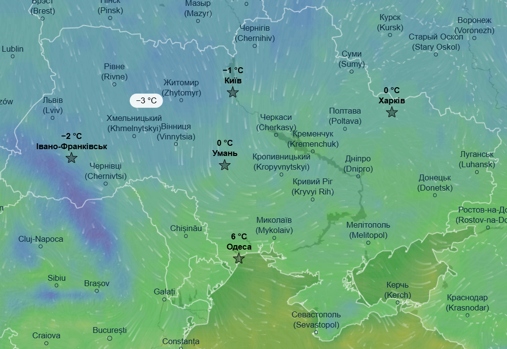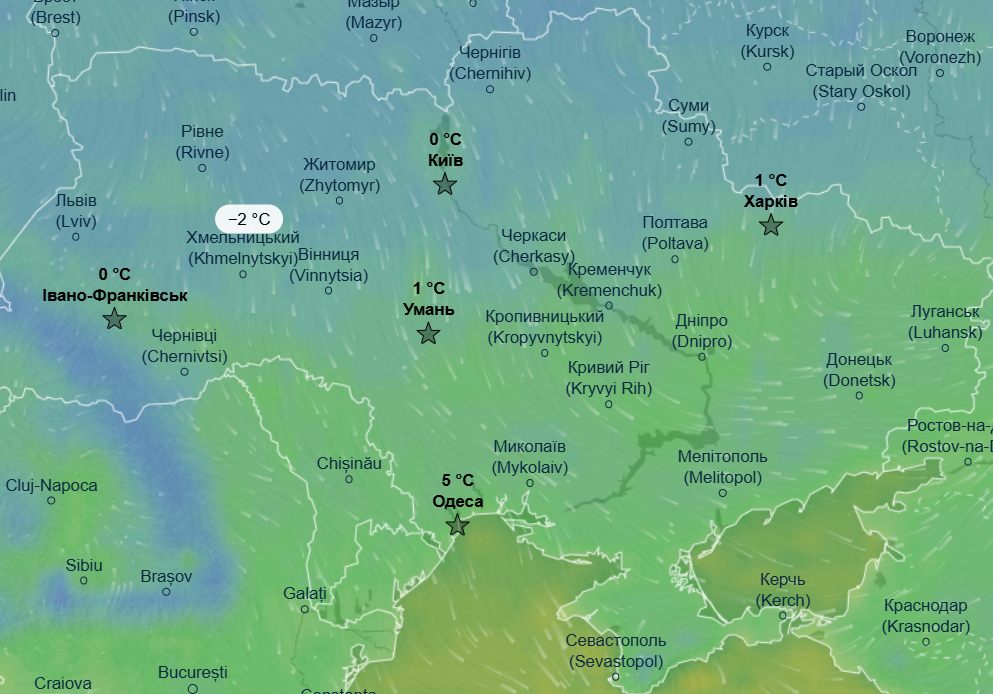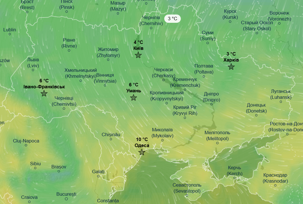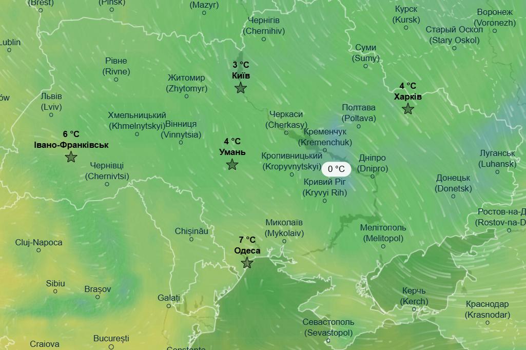 Термометры днем покажут лишь +3...+7 градусов, теплее на несколько градусов будет на юге страны и на Закарпатье - до +8...+11 градусов.