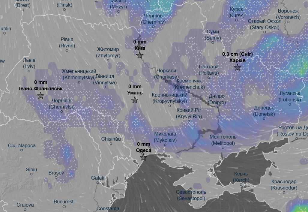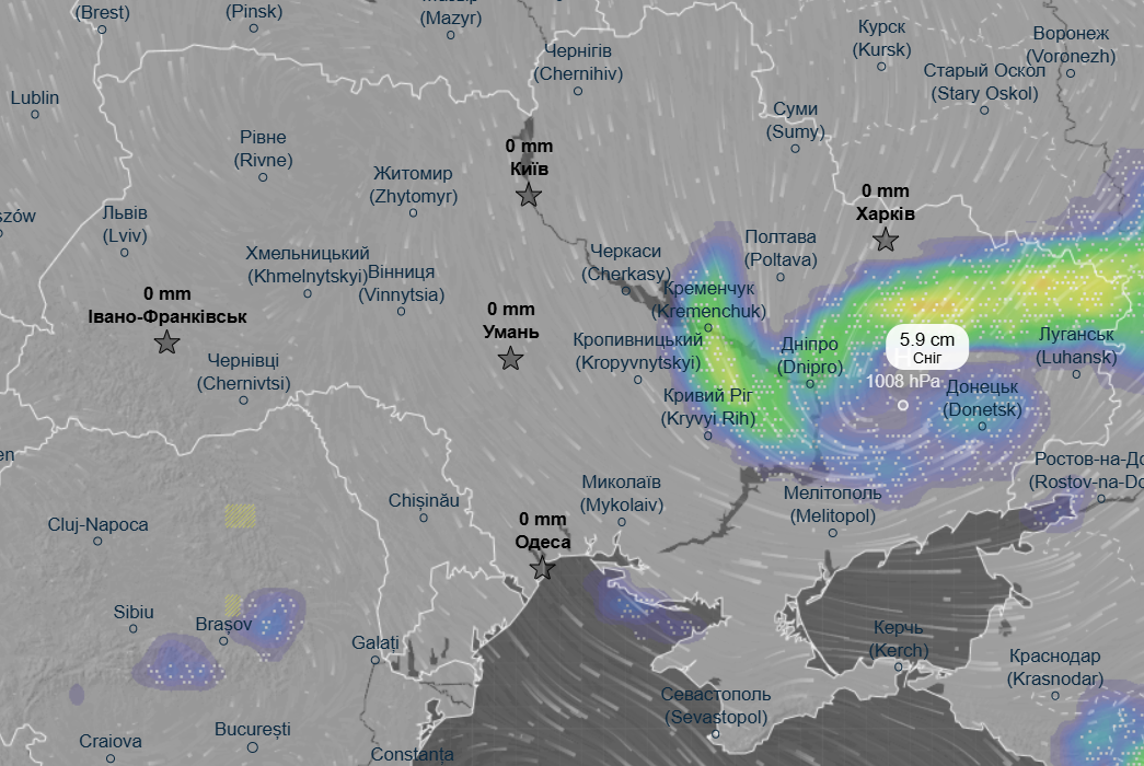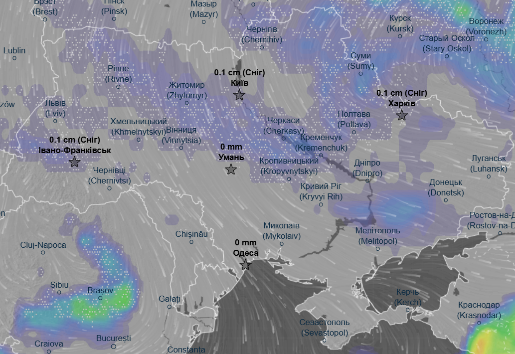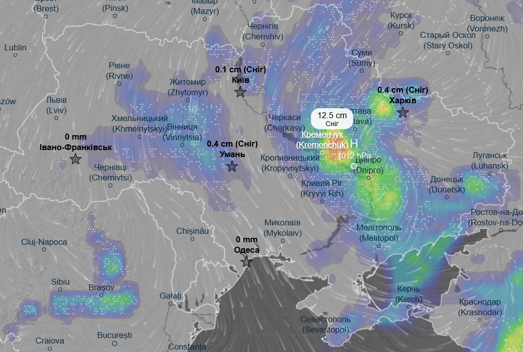 В течение суток снег накроет центральные, северные и восточные области страны - самые сильные снегопады синоптики прогнозируют в Черкассах, Кропивницком и Кременчуге. До конца суток снегопады накроют также Полтаву, Харьков, Донецк и Днепр.