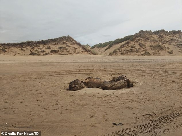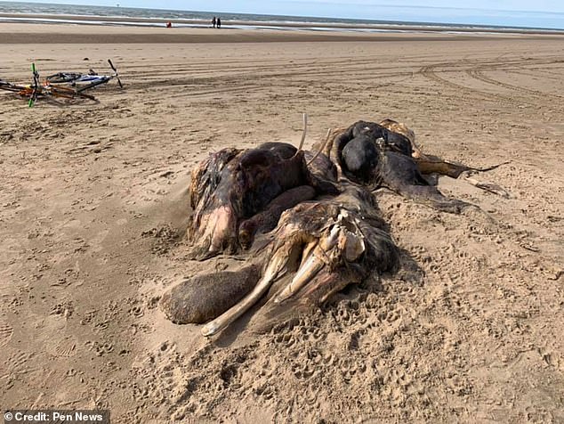 В Британии на побережье нашли разлагающееся неопознанное животное, которое напугало жителей.