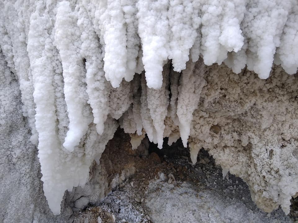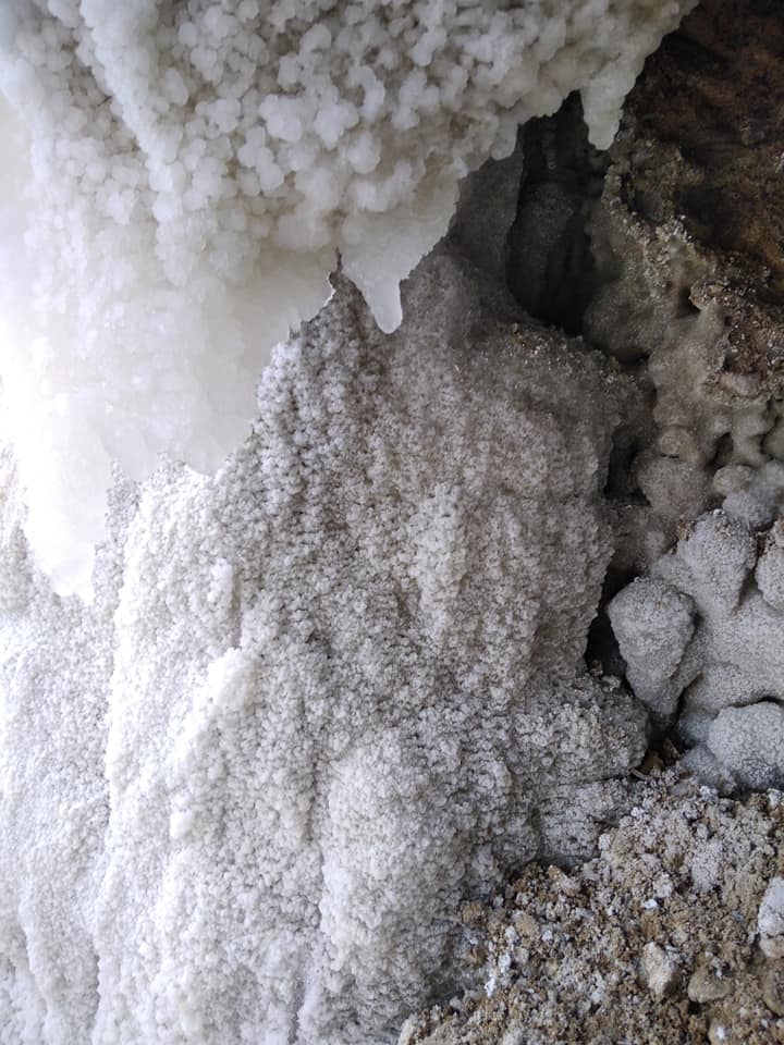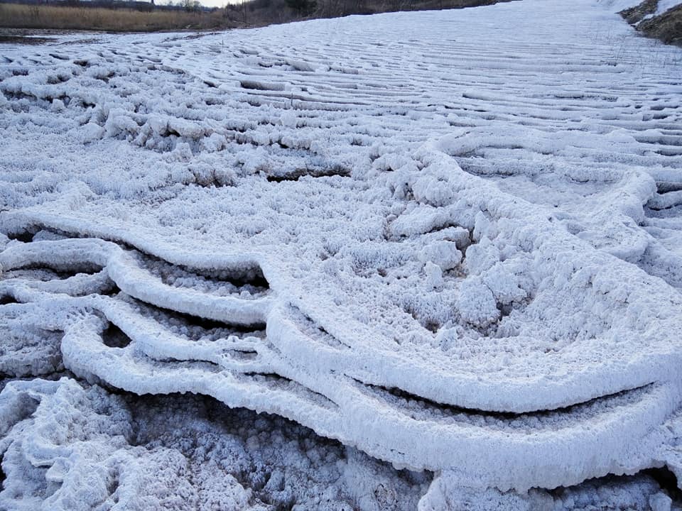 "Этот минерал откладывается на бортах хвостохранилищ и отвалов карьера с рассолов, которые постоянно круглогодично вытекают в окружающую среду, начиная с осени, когда наступают среднесуточные температуры около 0 градусов. Так продолжается более 50 лет. Уже вынесено в окружающую среду миллионы тонн солей", - прокомментировал он опубликованные фото.