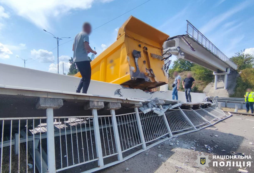 Отмечается, что ДТП с участием самосвала произошло в Черкасской области. Полиция установила, что грузовик совершил наезд на пешеходный мост. Из-за его обрушения там перекрыли движение транспорта в направлении Киева. На месте работают правоохранители.
