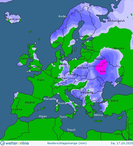 В субботу, 17 октября, Украину накроет циклон Foelke, который принесет сильные дожди, порывы северо-восточного ветра до штормовых значений в северных, западных и большинстве центральных областей страны.