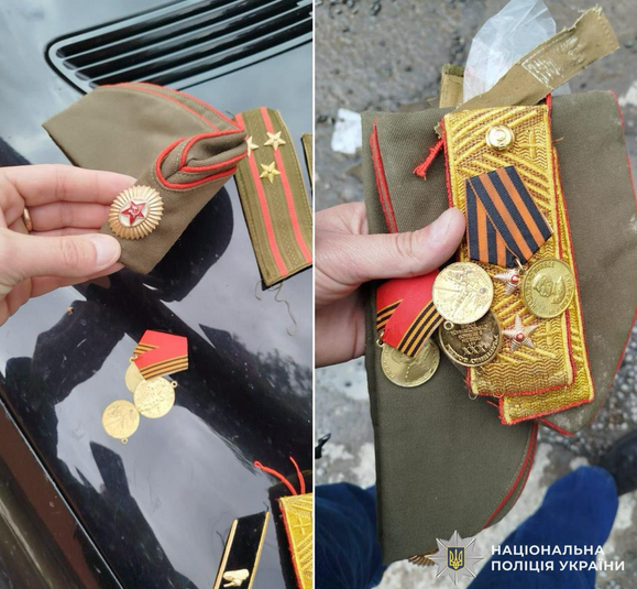 В одном из населенных пунктов Закарпатской области 9 мая полиция задержала двух мужчин, одетых в форму солдат советской армии с георгиевскими лентами. Правоохранители открыли производство.