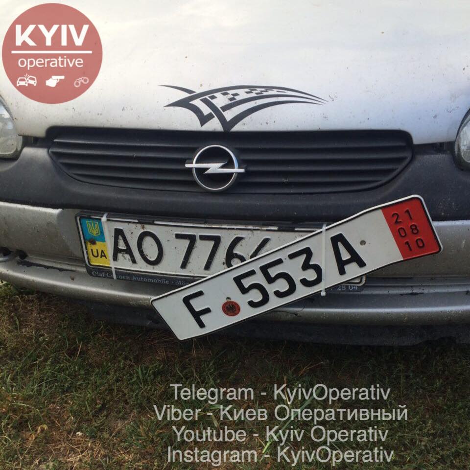 Согласно сообщению, на помощь группе реагирования патрульной полиции (грппы) отправились экипажи полиции. На месте было обнаружено Opel Combo с поддельными иностранными номерами, которые крепились сверху на украинском, и двух задержанных граждан. Еще двое скрылись с места происшествия. Патрульный кроссовер Mitsubishi Outlander был разбит при попытке остановить преступников.