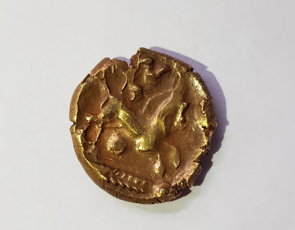 Круглый предмет, сначала показавшийся мужчине старой металлической шайбой, оказался золотой кельтской монетой середины I века нашей эры. Неподалеку мужчина заметил еще одну монету.