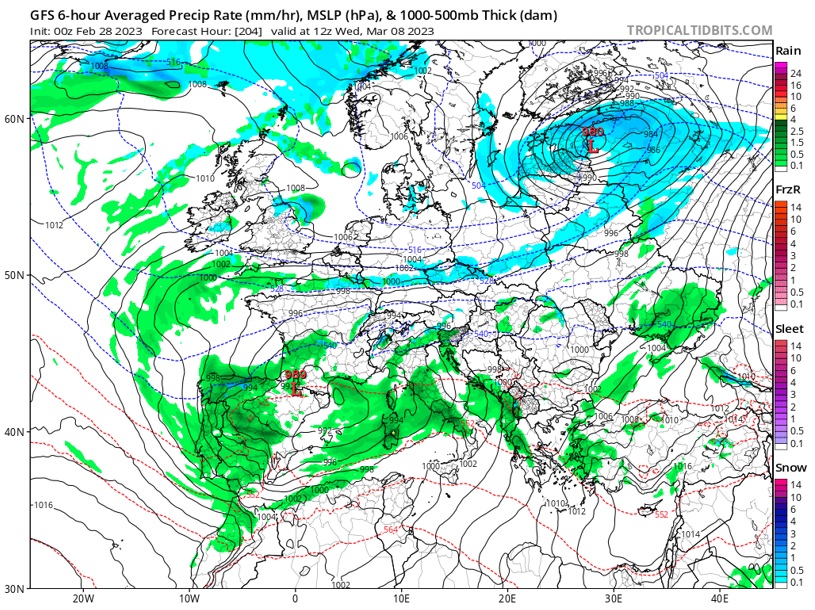 1 и 5 марта в северных и восточных областях возможны небольшие осадки в виде мокрого снега.