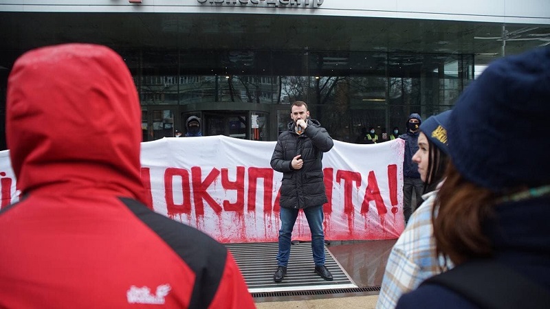 Национальный Корпус провел акцию протеста у входа в главный офис компании Glusсo в бизнес-центре "Eleven". Активисты обвиняют компанию в отмывании российских денег и финансировании российских террористов на Востоке, а также связях с лидером ОПЗЖ Виктором Медведчуком.