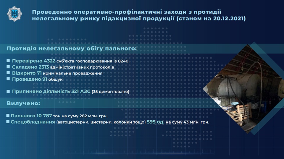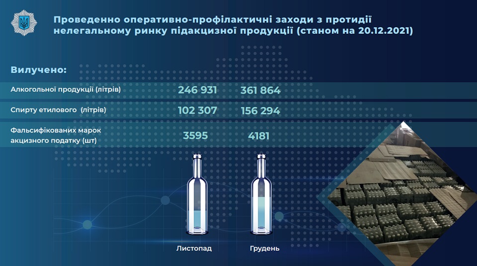 По состоянию на 22 декабря Национальная полиция составила 6915 административных протоколов и открыла 178 уголовных производств за распространение безакцизных товаров.