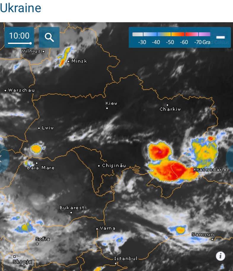 "Опять собрались грозовые тучи в Украине. На западе еще раскручиваются, но уже мощную энергию перебросила атмосфера на Крым, Николаевскую область и Запорожье", - отметила Диденко.