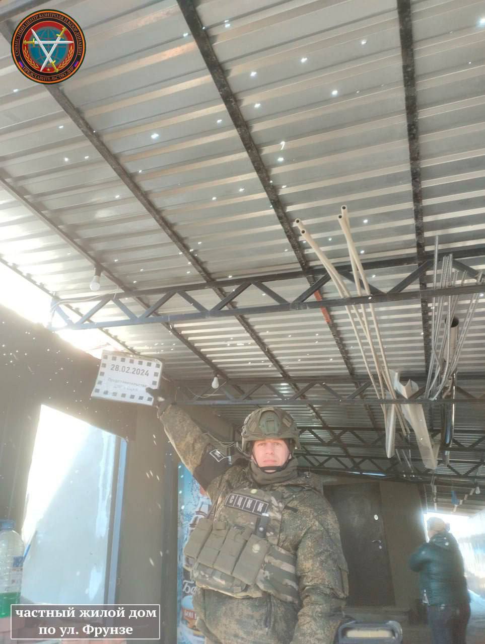 В сети обнародовали фото последствий удара по российским оккупантам во время построения в Еленовке Донецкой области вечером 27 февраля. Обстрел произошел во время очередного награждения военных.