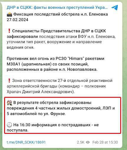 Ранее на передовой среди боеприпасов к РСЗО М142 HIMARS, которые активно используют ВСУ, была замечена маркировка M30A1, в которых содержится 180 тысяч карбидо-вольфрамовых шариков.