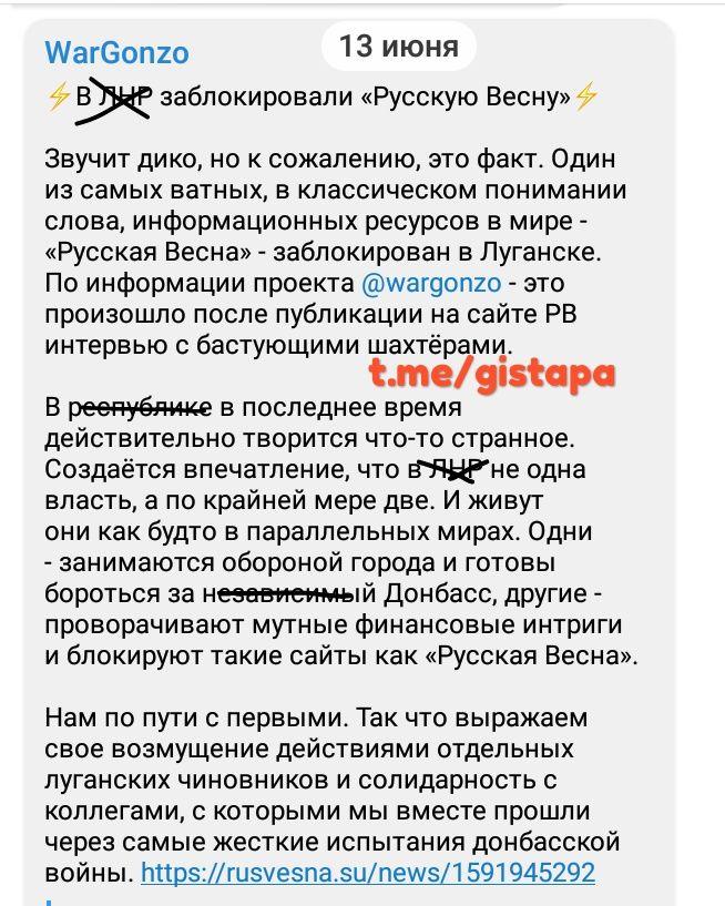 Кроме "Русской Весны", в так называемой ЛНР был заблокирован доступ к порталу "Антифашист" и перекрыт доступ к российской социальной сети "ВКонтакте".