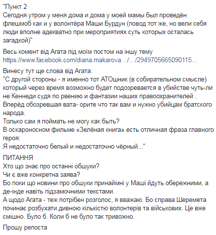 Отметим, ранее Бурдун отмечала, что действия проходят по делу, в котором фигурирует ветеран АТО Инна Грищенко (дело об убийстве Павла Шеремета).