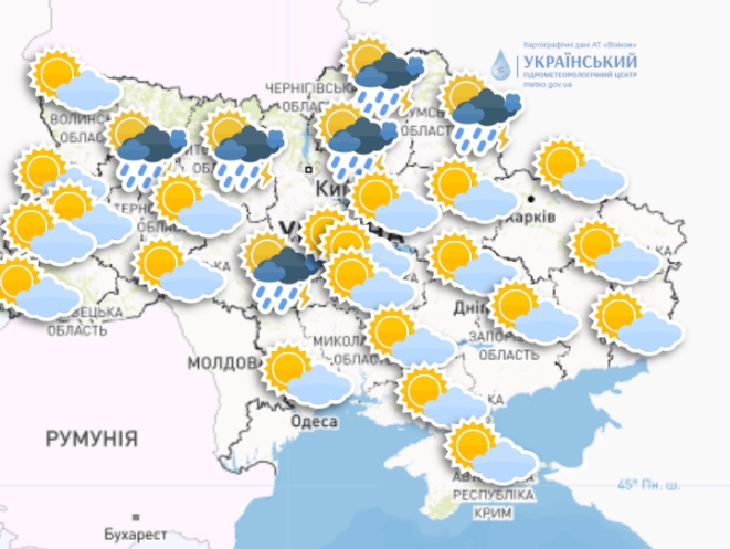 В Виннице сегодня будет +15°...+28°, небольшая облачность, легкий дождь.