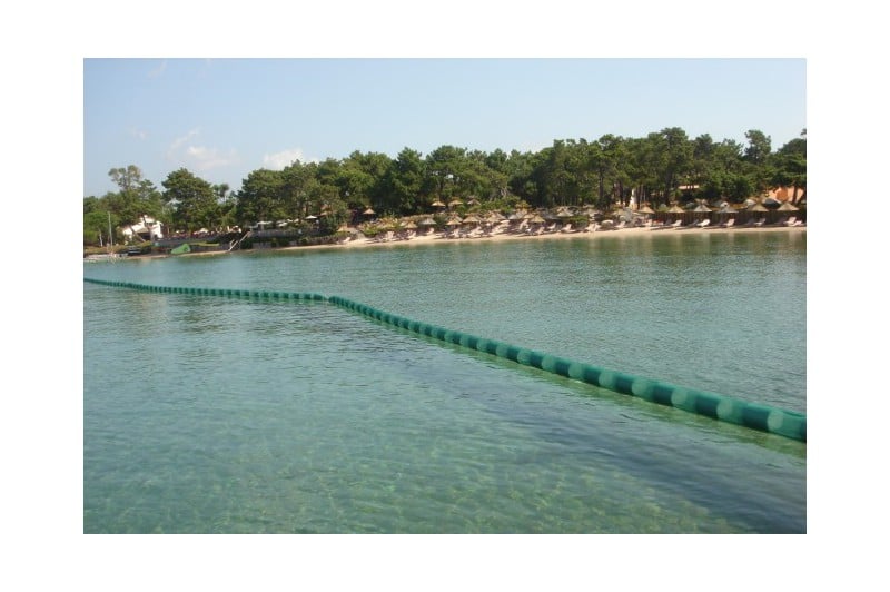 Барьеры с буйками и сетками устанавливают по периметру воды, образуя некий отгороженный бассейн. Удовольствие недешевое - 50 метров стоит около 80 тысяч гривен. Пока такие меры безопасности есть только на некоторых пляжах Кирилловки и в Бердянске, потому что в последнем расположено предприятие по изготовлению этих сетей.