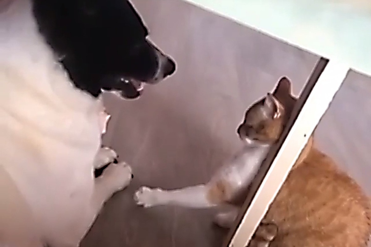 В сети появилось забавное видео, на котором кот нагло пристает к собаке.