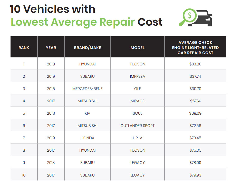 Эксперты обращали внимание на частоту срабатывания индикатора, свидетельствующего о возможной неисправности двигателя и необходимости его проверки, а также на стоимость ремонта моторов автомобилей различных марок в США.