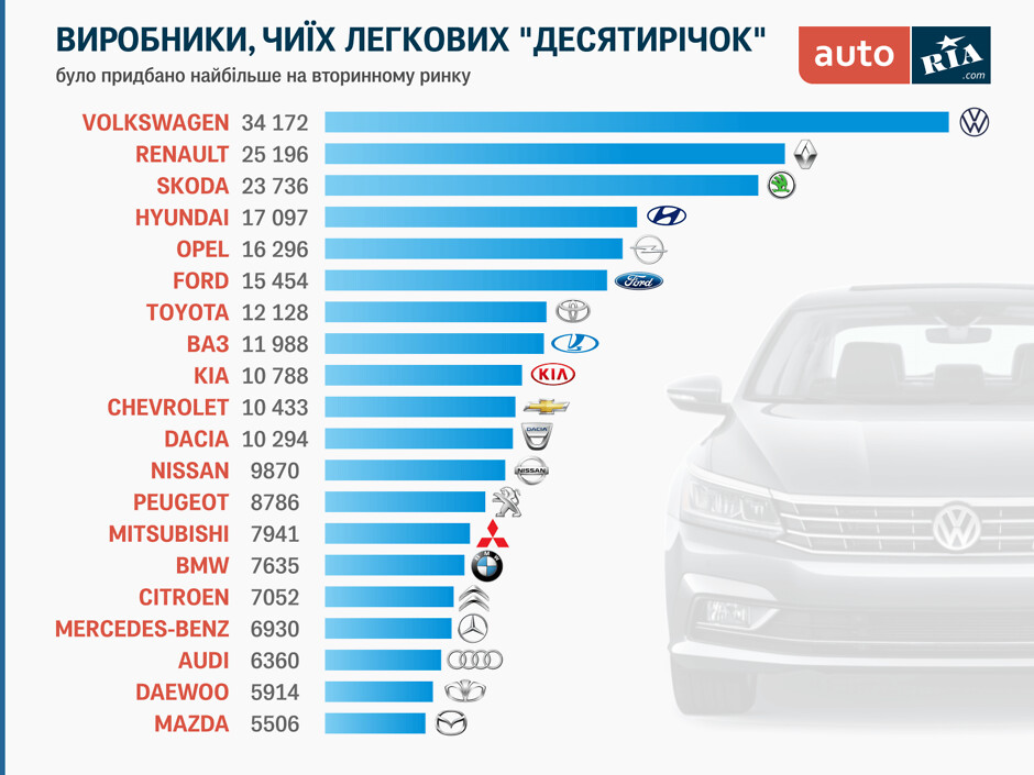 Об этом говорится в рейтинге сервиса продажи машин AUTO.RIA.