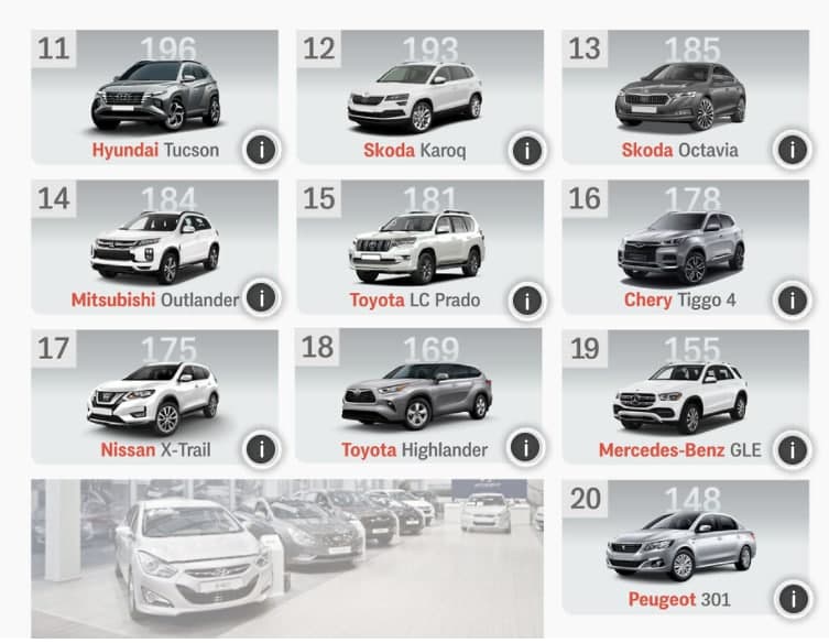 За Toyota и Renault идут KIA, Skoda и Nissan. Последний улучшил свой апрельский результат на три позиции. Также на пять строчек поднялся Hyundai, на три - Mazda и Citroen. Кроме того, возросла популярность Mitsubishi и Lexus.