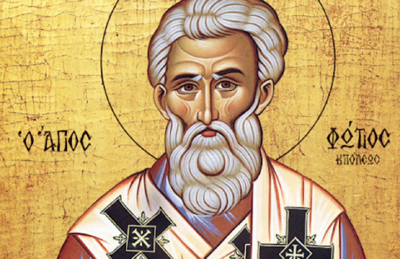 Святой Фотий Великий был патриархом Константинополя дважды, считается одним из самых выдающихся патриархов города. Его семья подверглась преследованиям. Сам Фотий с юности служил имперским секретарем, а патриархом стал после того, как предыдущий был устранен решением императора. Фотий был мирянином во время назначения, и хотел быть монахом, но за 6 дней прошел все необходимые для должности степени священства. Во второй раз он стал патриархом, когда предыдущий сам избрал его преемником, тогда он примирился с Папой, отменившим ему анафему, провел Вселенский Собор, отвергший приложение к Символу веры о происхождении Святого Духа от Отца и Сына. Является автором таких произведений по теологии как "Библиотека", "Мистагогия" и "Амфилохии".