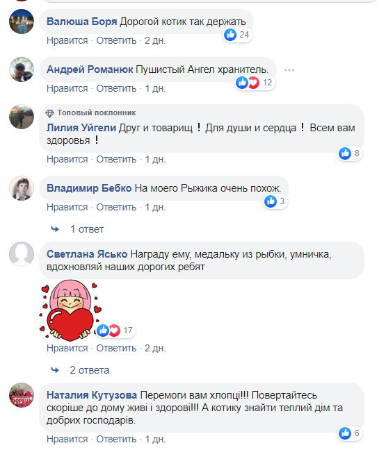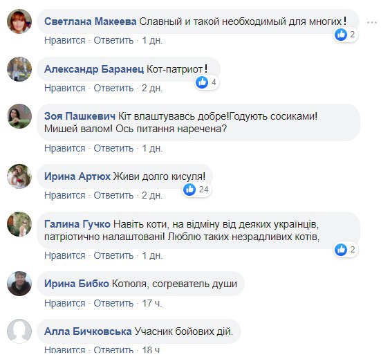 "Кот не убегает в подвал во время обстрелов и всегда послушно ждет, пока его люди дадут достойный ответ боевикам", - пишут в сообществе.
