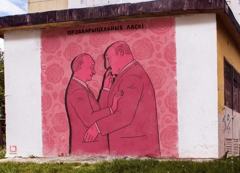 В столице Беларуси Минске активисты создали необычный мурал, на котором изобразили действующего президента страны Александра Лукашенко и российского президента Владимира Путина.