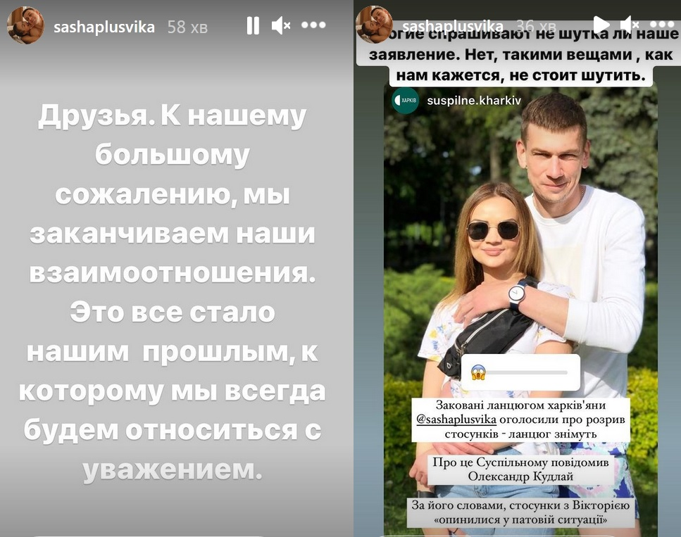"К нашему большому сожалению, мы заканчиваем наши отношения. Это все стало нашим прошлым, к которому мы всегда будем относиться с уважением", - говорится в сообщении пары в Instagram.