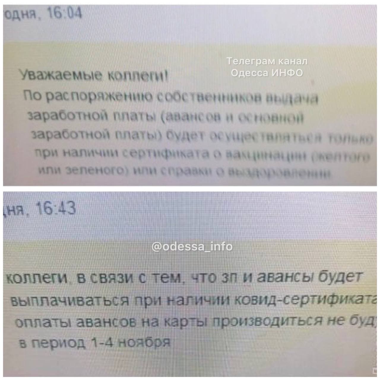Сотрудников одного из одесских предприятий предупредили о том, что заработная плата им будет выплачиваться только при наличии сертификата о вакцинации против COVID-19 либо справки о выздоровлении.
