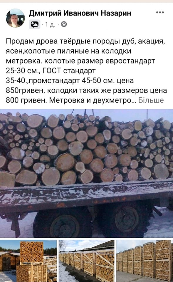 Так, в одной из местных групп социальной сети Facebook появилась информация о продаже топливных дров якобы от имени лесохозяйственных предприятий.