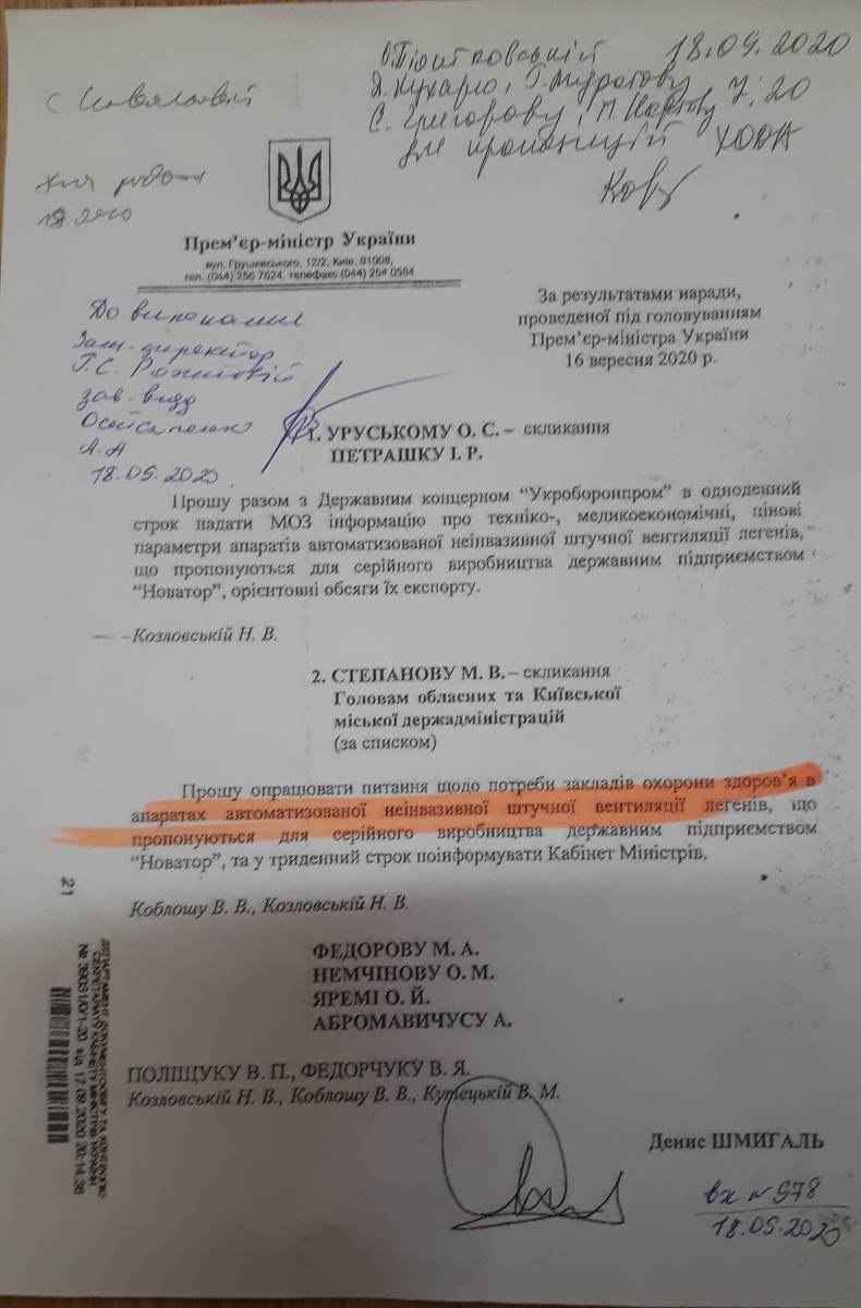 "Очередное "днище" пробила украинская власть в "борьбе" с коронавируса. Директорам больниц, которые принимают больных COVID-19, разослали письма с требованием дать потребность в аппарате ИВЛ - "Новатор". Про этот хлам: еще весной Ассоциация Анестезиологов Украины обратилась к руководству государства с предостережением об опасности этого "изобретения". После этого вроде прислушались и прекратили пихать этот хлам. Но осенью произошел рецидив маразма", - отметил профессор и опубликовал письмо властей.