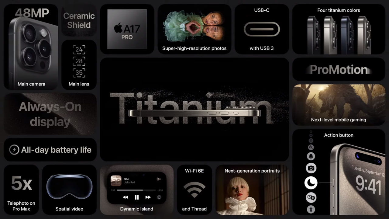 Кроме того, как сообщили на презентации, Apple планирует отказаться от использования пластика в упаковке уже до конца следующего года. К 2023 году Apple планирует достичь углеродной нейтральности всего бизнеса, а следующим шагом является сведение углеродного следа у всех продуктов до чистого нуля. На iPhone 15 Pro выйдут игры Assassin's Creed: Mirage, Resident Evil: Village, Resident Evil 4 и Tom Clancy's The Division.