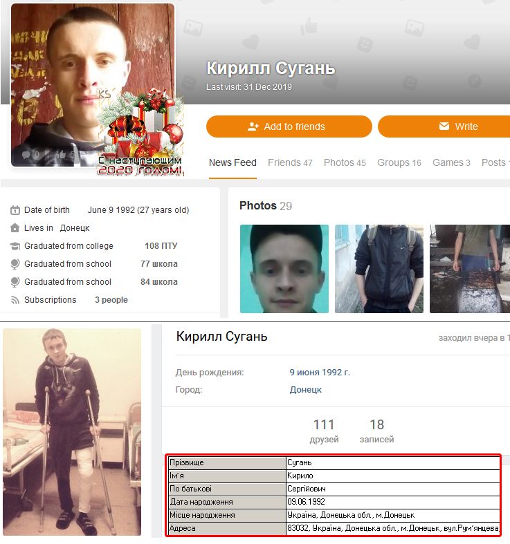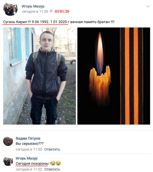 В первый день 2020 года на Донбассе ликвидировали боевика по имени Кирилл Сугань.
