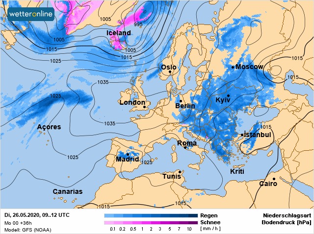 Во вторник, 26 мая, в Украине ожидается прохладная и дождливая погода, потепление придет не раньше первых чисел июня.