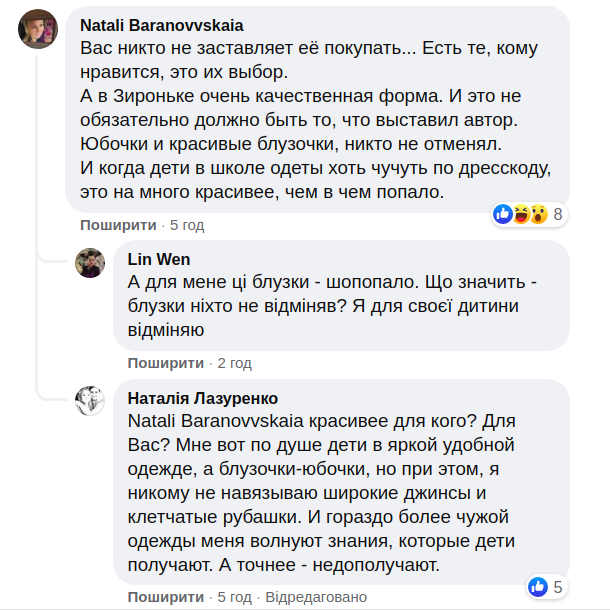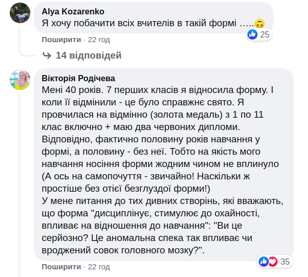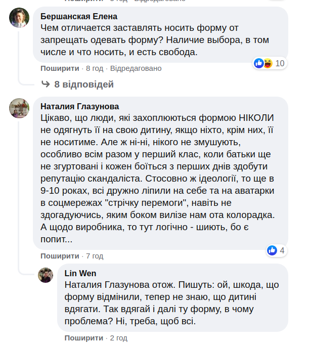 "На 7-м году войны, третьем отмены приказа о школьной форме, зная, что школы устраивают буллинг детей за одеждой, прямо нарушает Конвенцию по правам ребенка - они шьют это о есть спрос. Мне просто интересно - ЧТО надо сделать, чтобы это перестали вообще делать? Я вижу только один способ - как внести эту форму в перечень запрещенных символов СССР?", - написала она.
