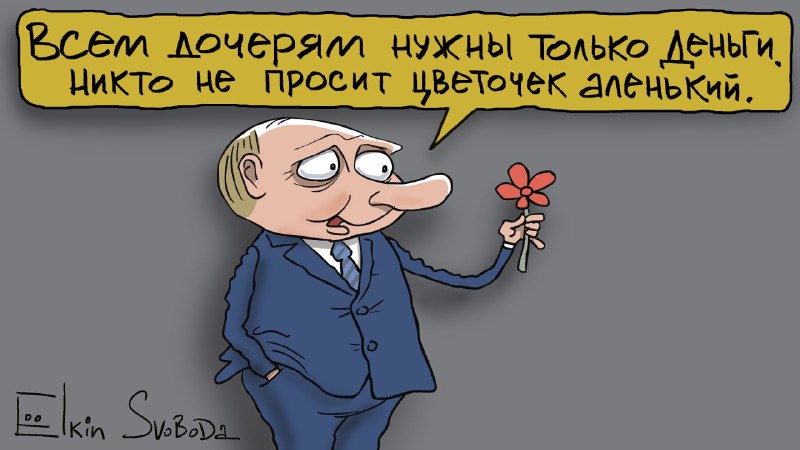Известный художник Сергей Елкин нарисовал карикатуру в связи со слухами о внебрачной дочери президента России Владимира Путина.