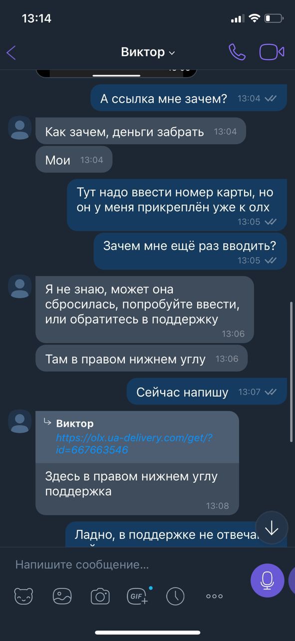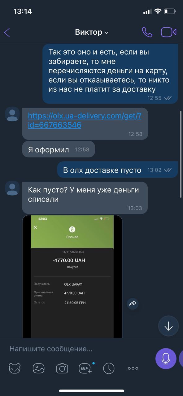 Злоумышленники придумали метод обмана продавцов, которые выставляют товары на сайт. Они пишут им, что готовы приобрести товар по объявлению. После этого приходит ссылка, что деньги якобы отправлены (при OLX-доставке деньги банк сам "замораживает" и для этого ничего вводить не надо).
