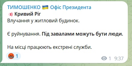 Кроме того, сообщается о "прилетах" по объектам в Кривом Роге. Александр Вилкул подтвердил эту информацию.Попадание было в жилой дом.