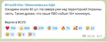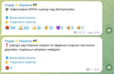 Вместе с тем, враг запустил беспилотники "Шахид" в сторону южных областей Украины.