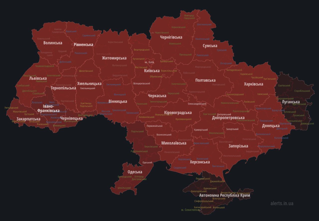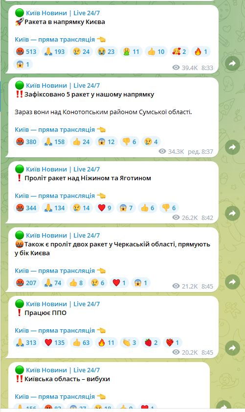 По состоянию на 09.55 сообщается об очередной волне ракетных пусков.