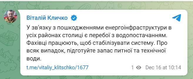 Мэр Киева Виталий Кличко сообщил о взрывах в столице. Движение метро приостановлено, подземка используется как укрытие. Также мэр Киева сообщил о проблемах с водоснабжением.