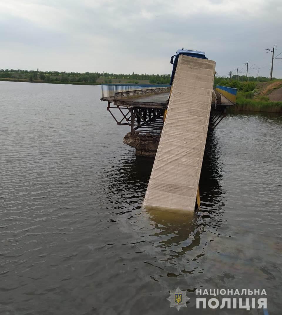 Разрушение секции моста через реку Чертомлык произошло на участке 206 км автомобильной дороги Н-23 Кропивницкий - Кривой Рог - Запорожье возле села Алексеевка Никопольского района.