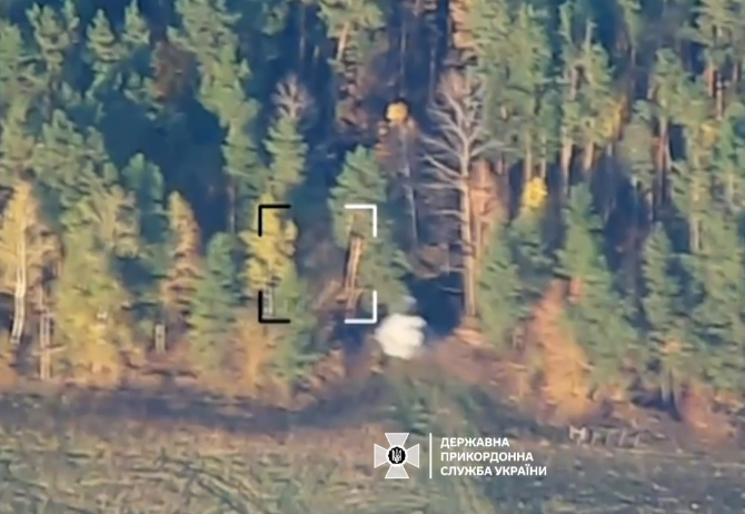 "Аэроразведка Госпогранслужбы разнесла 152-мм пушку, которой враг обстреливал северную пограничную Украину", - говорится в сообщении под обнародованным видео.