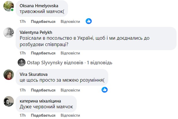 Об этом сообщил поэт и переводчик Остап Сливинский. По его словам, посольство разослало свежее письмо с этой программой. С ней можно ознакомиться по ссылке.