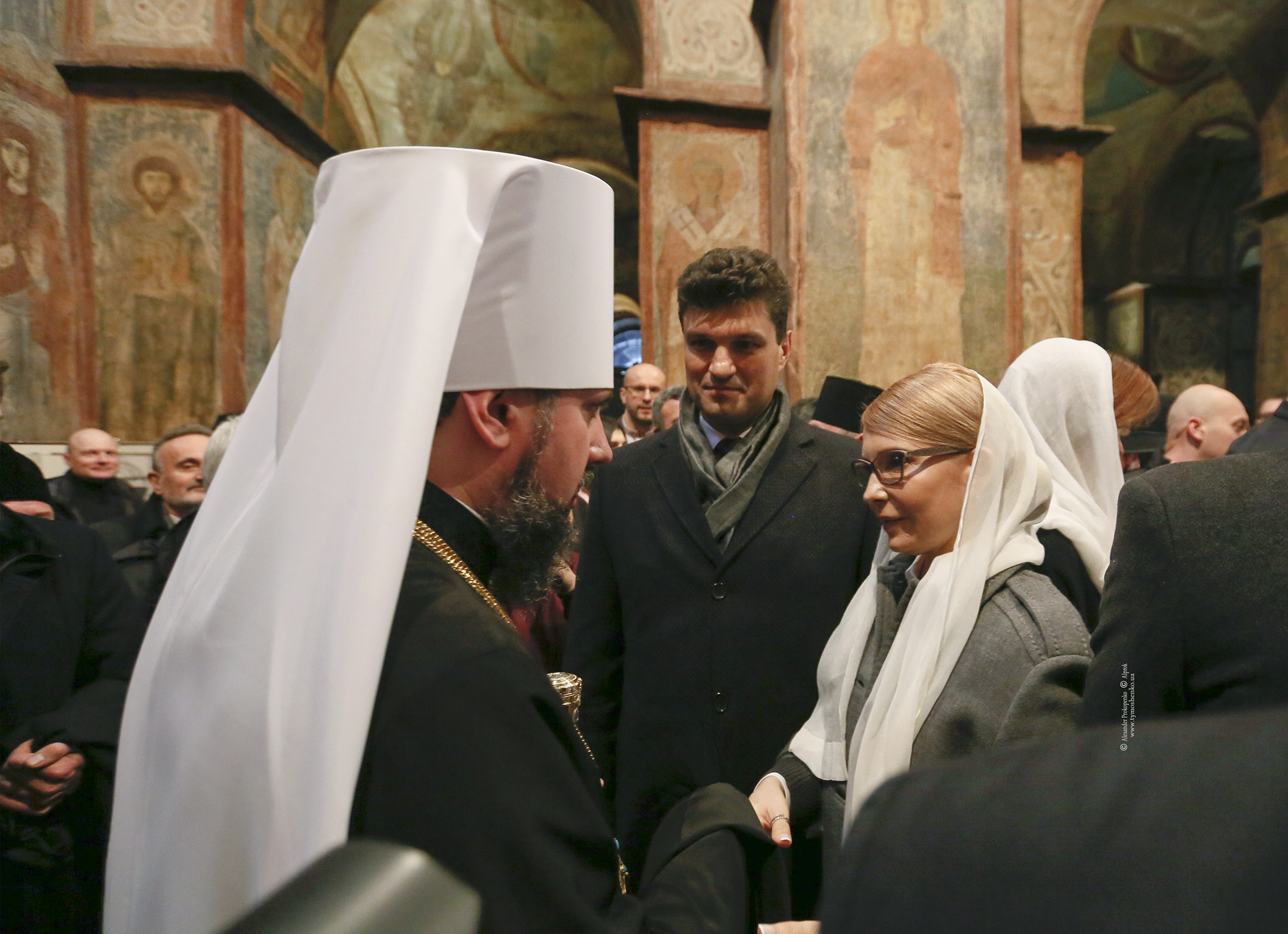 Юлия Тимошенко и депутаты фракции "Батькивщина" приняли участие в литургии и чине интронизации предстоятеля Православной церкви Украины Епифания, которая сегодня состоялась в Софии Киевской.