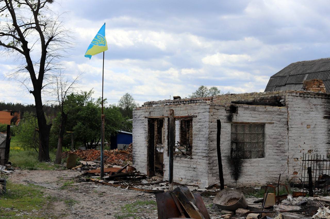 Появились кадры села Мощун Киевской области, где происходили ожесточенные бои с российскими оккупантами.