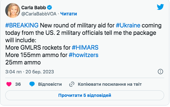 Пакет включает в себя больше боеприпасов для предоставленных США HIMARS и гаубиц, а также боеприпасы для боевых машин пехоты Bradley, ракеты HARM, противотанковое оружие, речные катера и прочее оборудование.