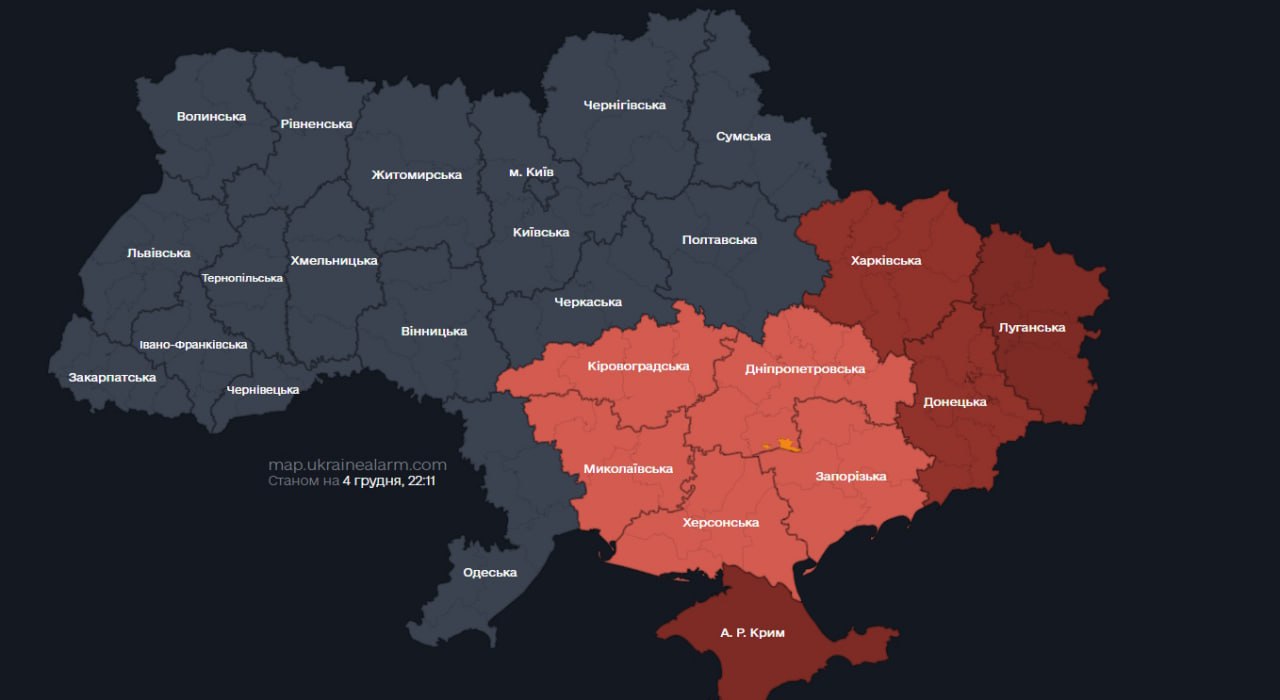 Вечером 4 декабря российские оккупанты наносят удары иранскими дронами-камикадзе Shahed 136 по Харьковской области.