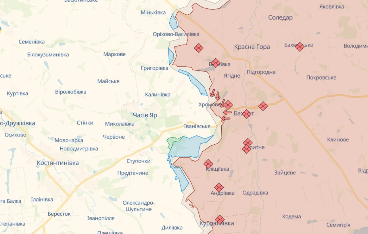 На Бахмутском направлении враг продолжает вести наступательные действия. Бои за город Бахмут продолжаются. В течение суток противник безуспешно пытался восстановить утраченные позиции к югу от населенного пункта Ивановское. К тому же, вел наступательные действия в направлении Григоровки, успеха не имел. Нанес авиационные удары в районах населенных пунктов Бахмут и Ивановское. От вражеских обстрелов пострадали Орехово-Василовка, Марково, Бахмут, Ивановское, Белая Гора и Нью-Йорк Донецкой области.